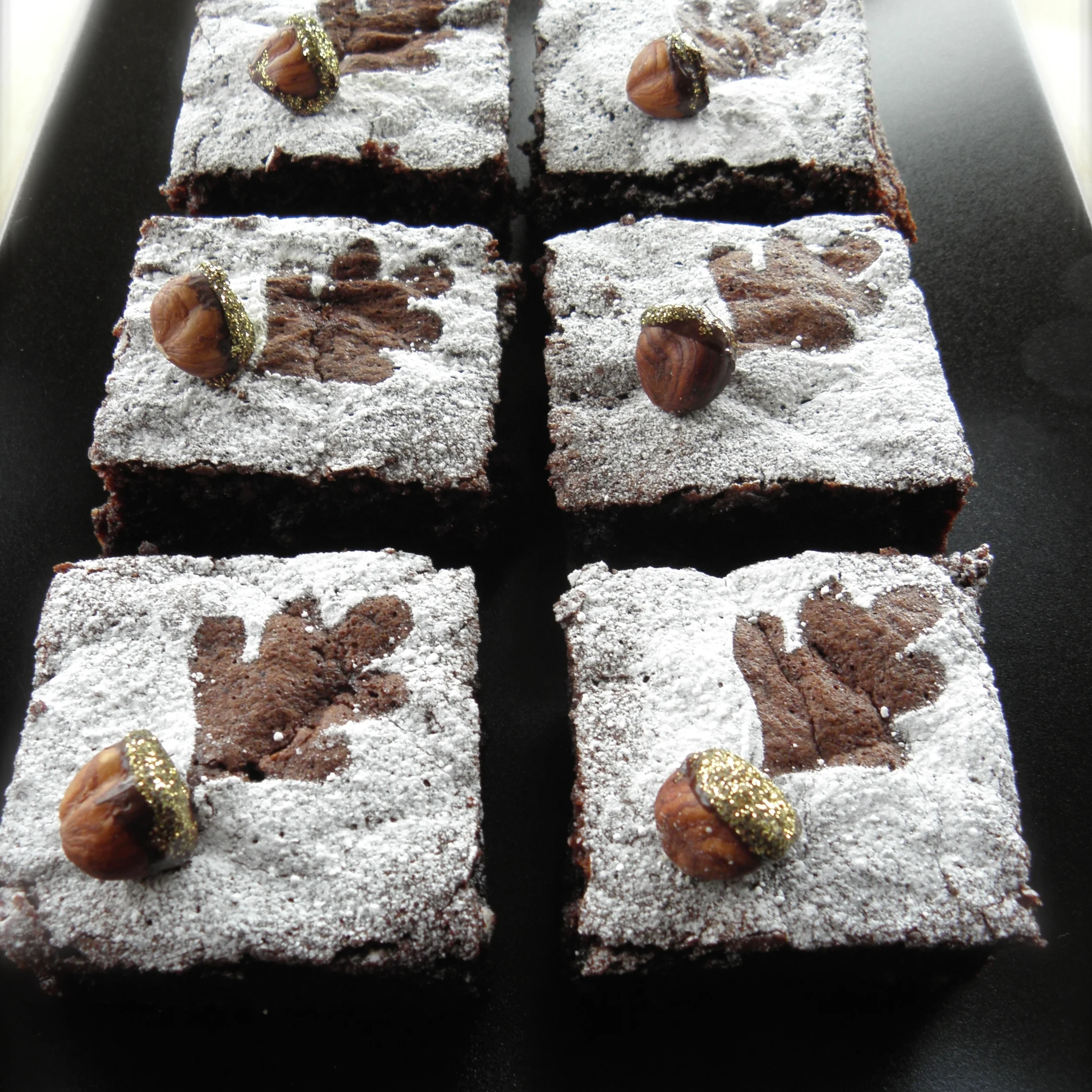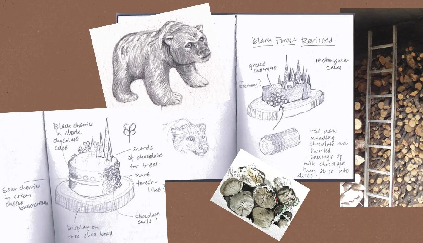 Roll out the dark modelling chocolate. Use the milk modelling chocolate to make a long sausage shape and wrap with the dark chocolate. Add a bark-like texture, and then slice into discs. Paint on tree rings if you have time.