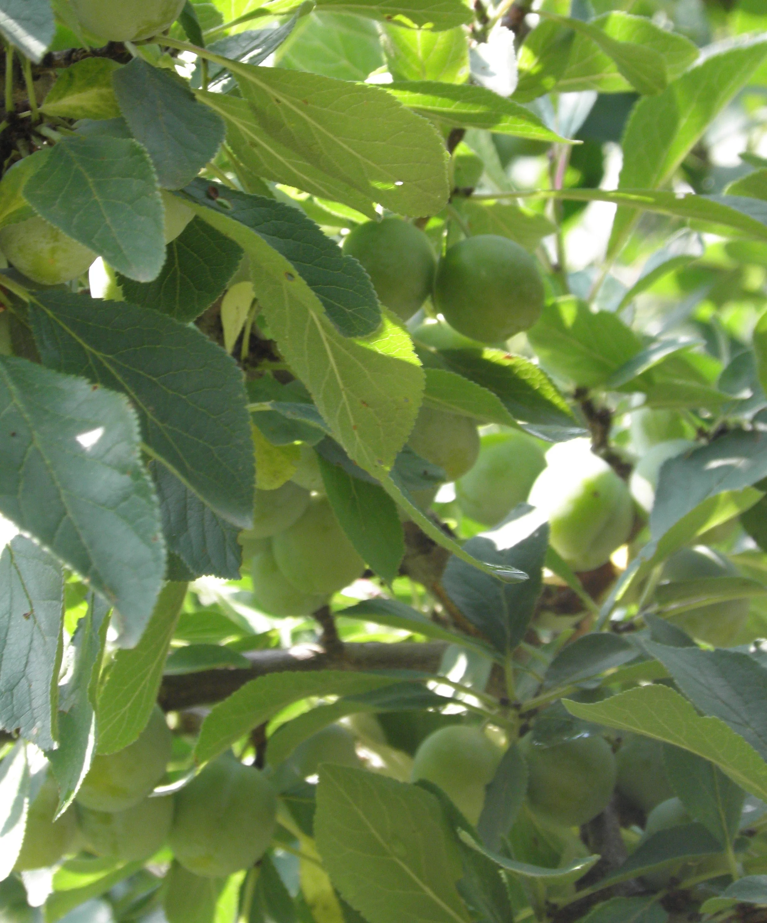 Mirabelles are small sweet yellow plums grown mainly in France. Last year we pushed the limits of our baggage allowance with these little fruit. That was in late August, but our trip this year was sadly fruitless. Laden with little green pebbles the trees need a few more weeks before they yield fruit fit for a tarte aux mirabelles. I'm keeping an eye out for imports.